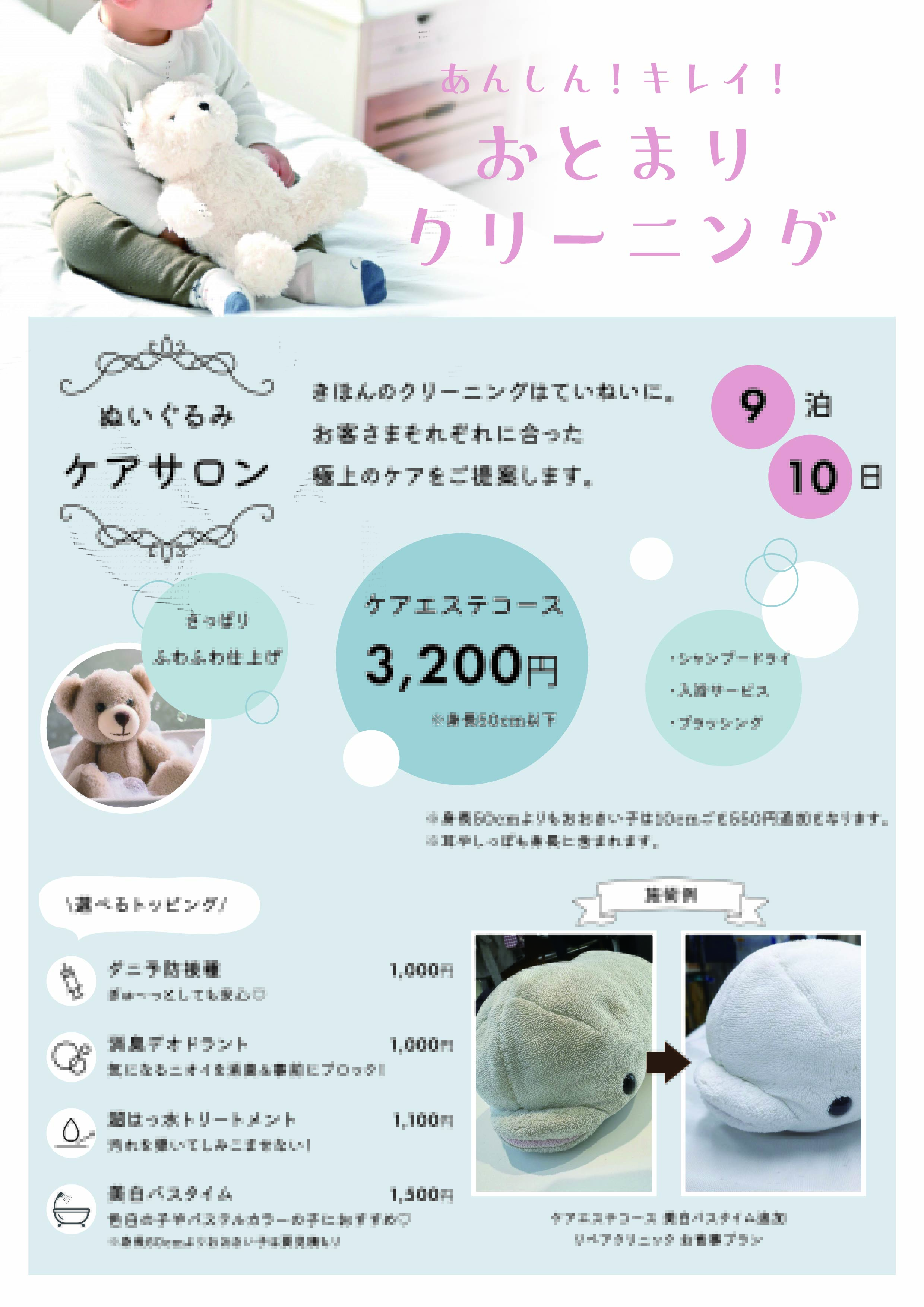 大切なぬいぐるみはおとまりクリーニングにおまかせください!